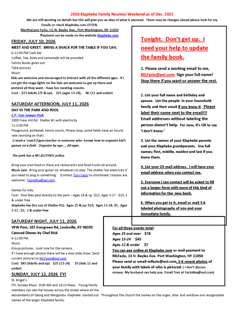 Klapheke Family Reunion, Louisville, KY